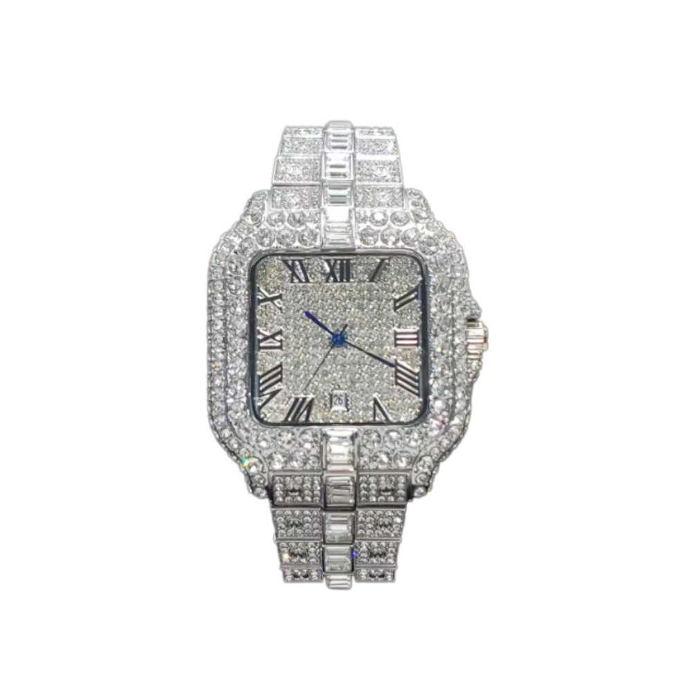 Zythex Vetrax is an Iced out square watch from SYNTHETIC GEMSTONES, which easily elevates any outfit with its shine.
